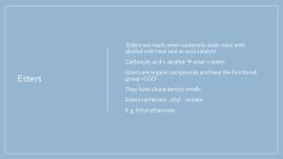 Hydrocarbons, alkanes, alkenes, alcohols, carboxylic acids and esters (formula, uses, reactions, structure, displayed formulae)