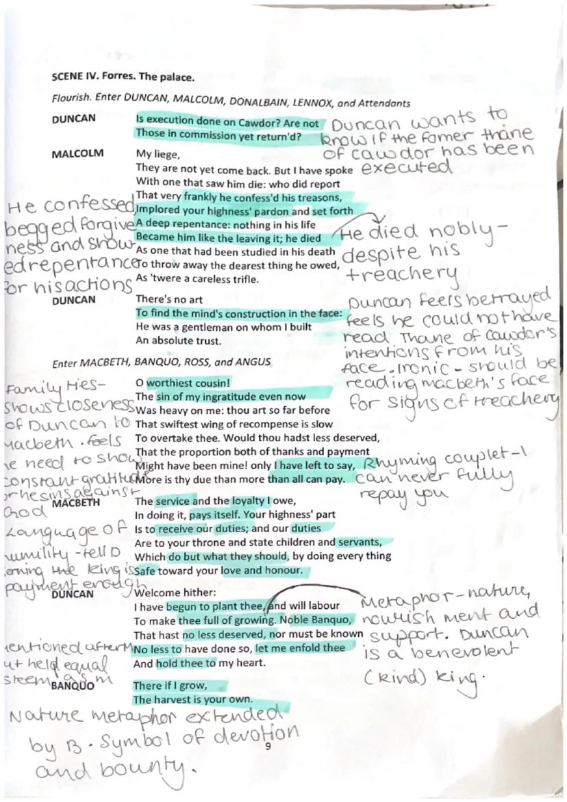 In this pivotal scene of Macbeth Act 1, King Duncan makes a crucial announcement that sets tragic events in motion. The scene opens with Duncan expressing overwhelming joy that manifests as tears, demonstrating the complex emotional landscape of Shakespeare's characters. This moment in Macbeth Act 1 Scene 2 annotations reveals the king's generous and trusting nature, which ultimately contributes to his downfall.