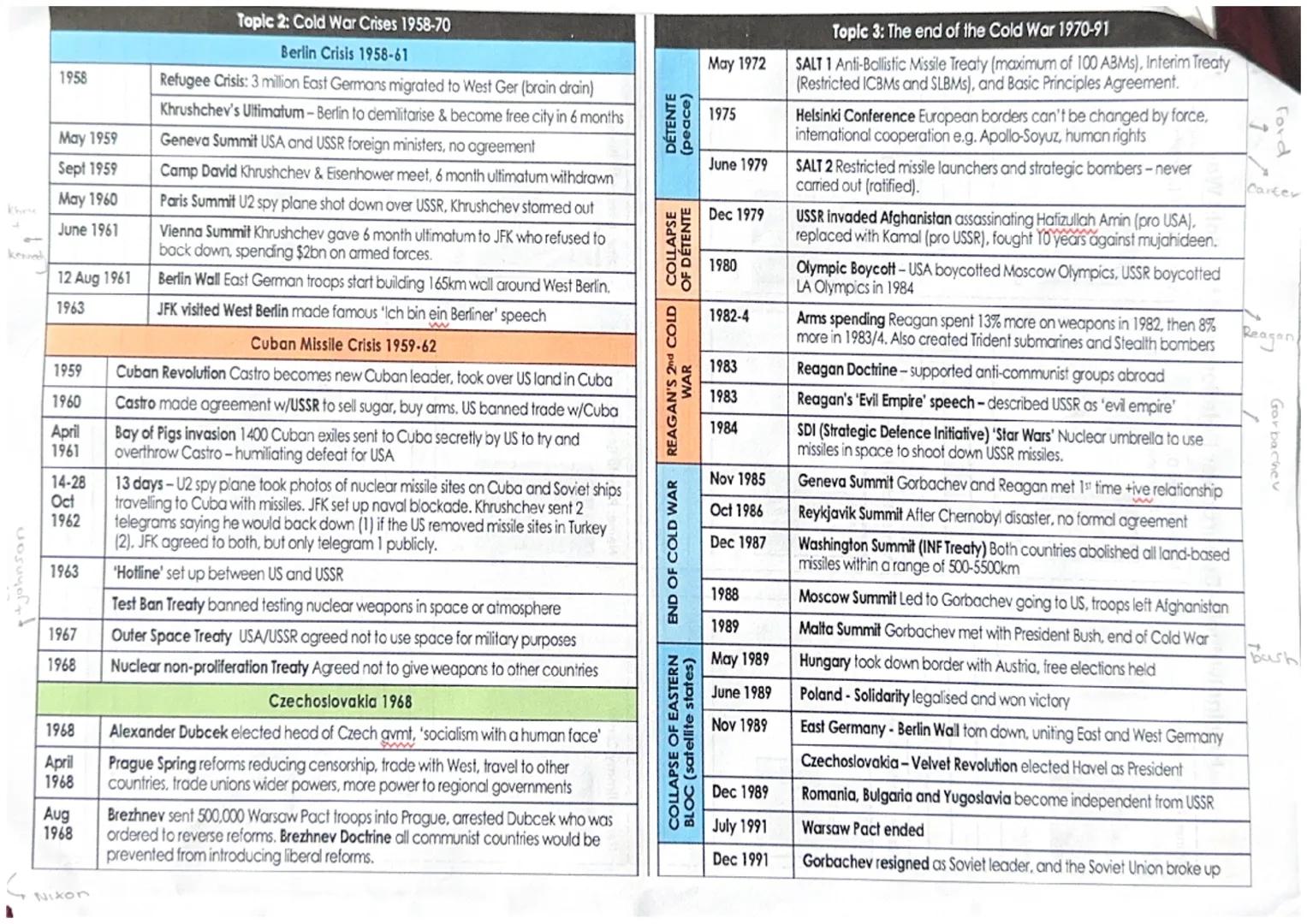 This comprehensive timeline provides students with a clear chronological framework of the Cold War, essential for understanding the progression of events and the escalation of tensions between the superpowers. It serves as an excellent revision tool for GCSE Edexcel History Cold War exams and complements other Cold War GCSE History resources.