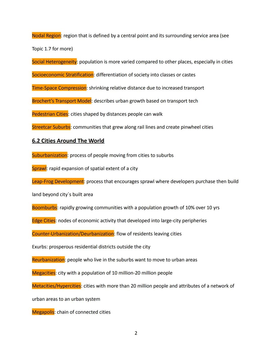 Unit 6: Cities and Urban Land Use Patterns & Processes
