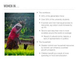 Highlight: Research shows that providing women equal access to economic resources could increase agricultural output by up to 4% globally, demonstrating the untapped potential for economic growth.