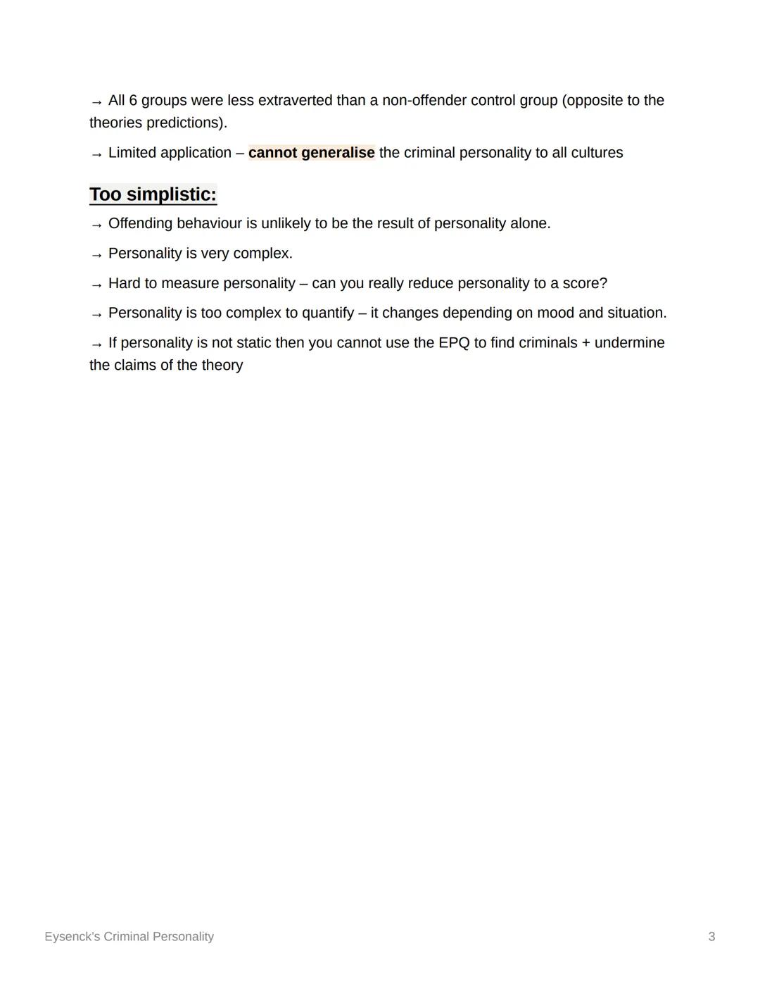 Another criticism is that the theory is too simplistic. Offending behavior is unlikely to be the result of personality alone, as personality is a complex construct influenced by various factors.