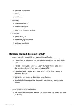The biological basis of Obsessive-Compulsive Disorder (OCD) involves complex neural mechanisms and decision-making systems that affect behavior and emotional processing. Research has shown that abnormal functioning in specific brain regions, particularly the lateral frontal lobes, contributes to impaired decision-making in Psychopathology A level notes. The left parahippocampal gyrus, which processes unpleasant emotions, shows irregular activity patterns in OCD patients.