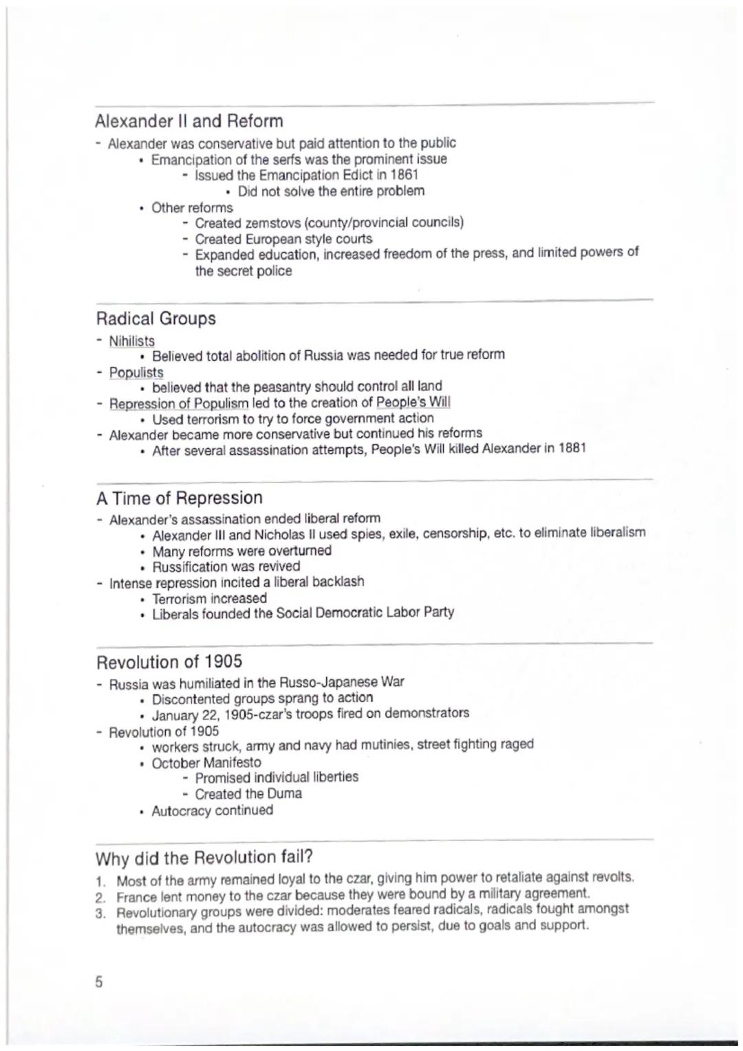 The Unification of Italy, The Unification of Germany, and Reform and Revolution in Russia