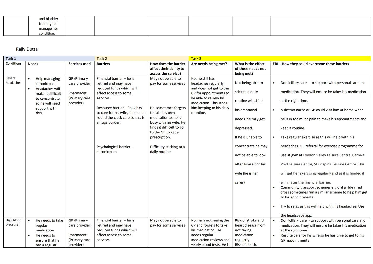 When examining barriers to accessing health and social care services and how they may be overcome, caregivers like Rajiv demonstrate how multiple challenges can compound each other. His situation illustrates several of the 8 barriers in health and social care, particularly resource constraints and psychological barriers. As the primary caregiver for his wife who requires constant attention, Rajiv faces significant obstacles in managing his own hypertension condition.