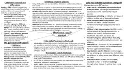The concept of childhood is not universal but varies across cultures and historical periods. This page introduces the idea of childhood as a social construct, emphasizing how perceptions of children and their roles have changed over time.