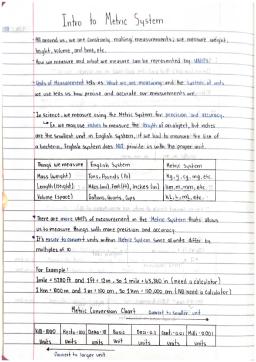 A metric conversion chart is provided, showing the relationships between different metric prefixes and how to convert between larger and smaller units.