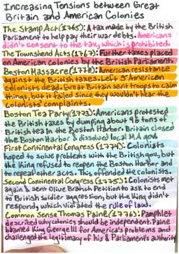 Example: The grievances included complaints about taxation without consent, forced quartering of British soldiers, trade restrictions, and the dissolution of colonial legislatures.