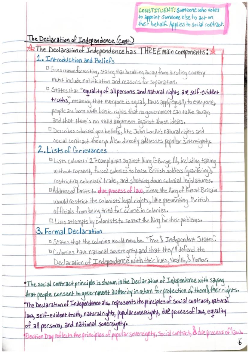 The Declaration of Independence was constructed with three distinct components that established the foundation for American governance and independence.